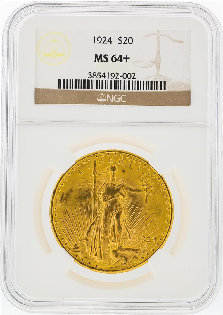 One 1924 NGC MS64+ $20 St. Gaudens Double Eagle Gold Coin. NGC Certified.