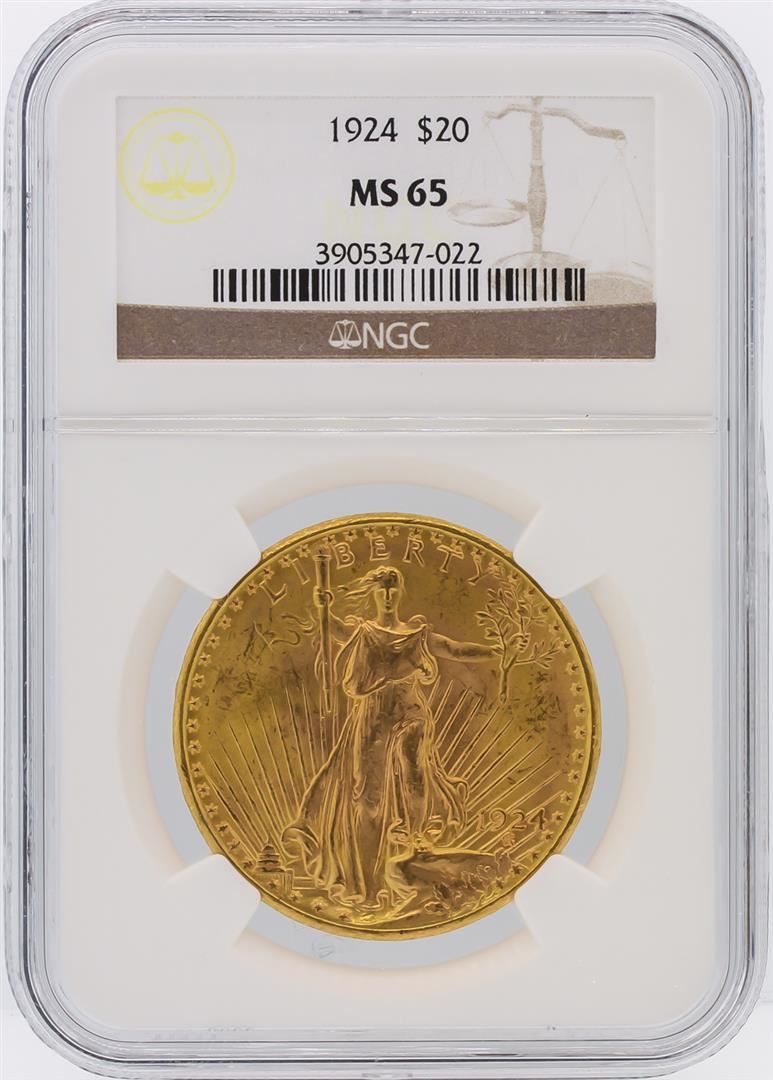 One 1924 NGC MS65 $20 St. Gaudens Double Eagle Gold Coin. NGC Certified.