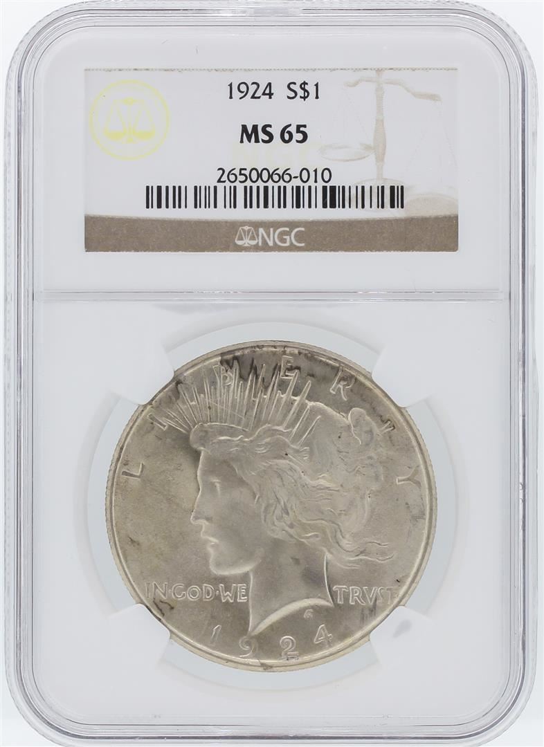 One 1924 NGC MS65 Peace Silver Dollar. NGC Certified.
