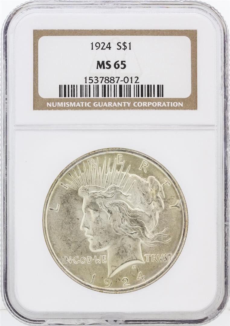 One 1924 NGC MS65 Peace Silver Dollar. NGC Certified.