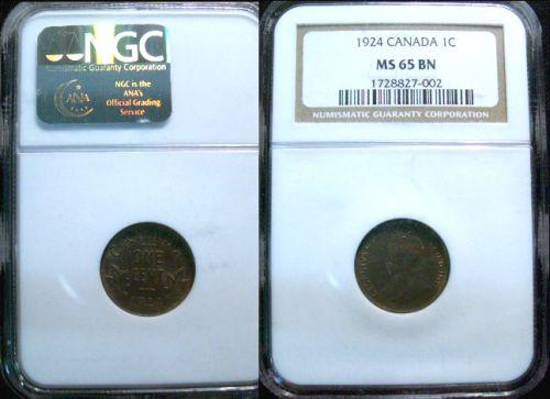 1924 NGC MS65BN. A gem key date that shows lots of luster and trace red.