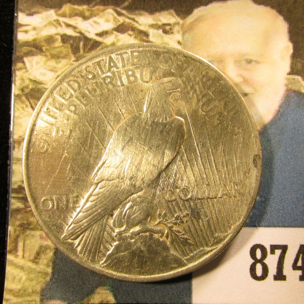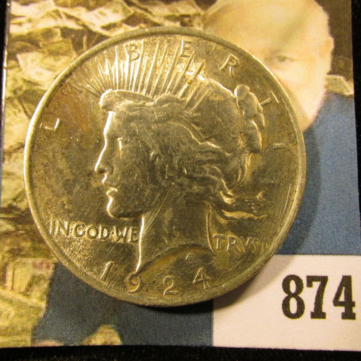1924 P U.S. Peace Silver Dollar. Almost Uncirculated. 'Doc" called this the Bird Drop variety because of the reverse.