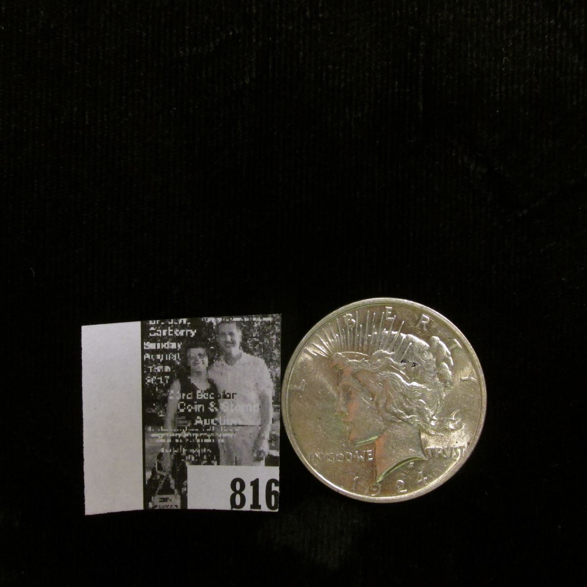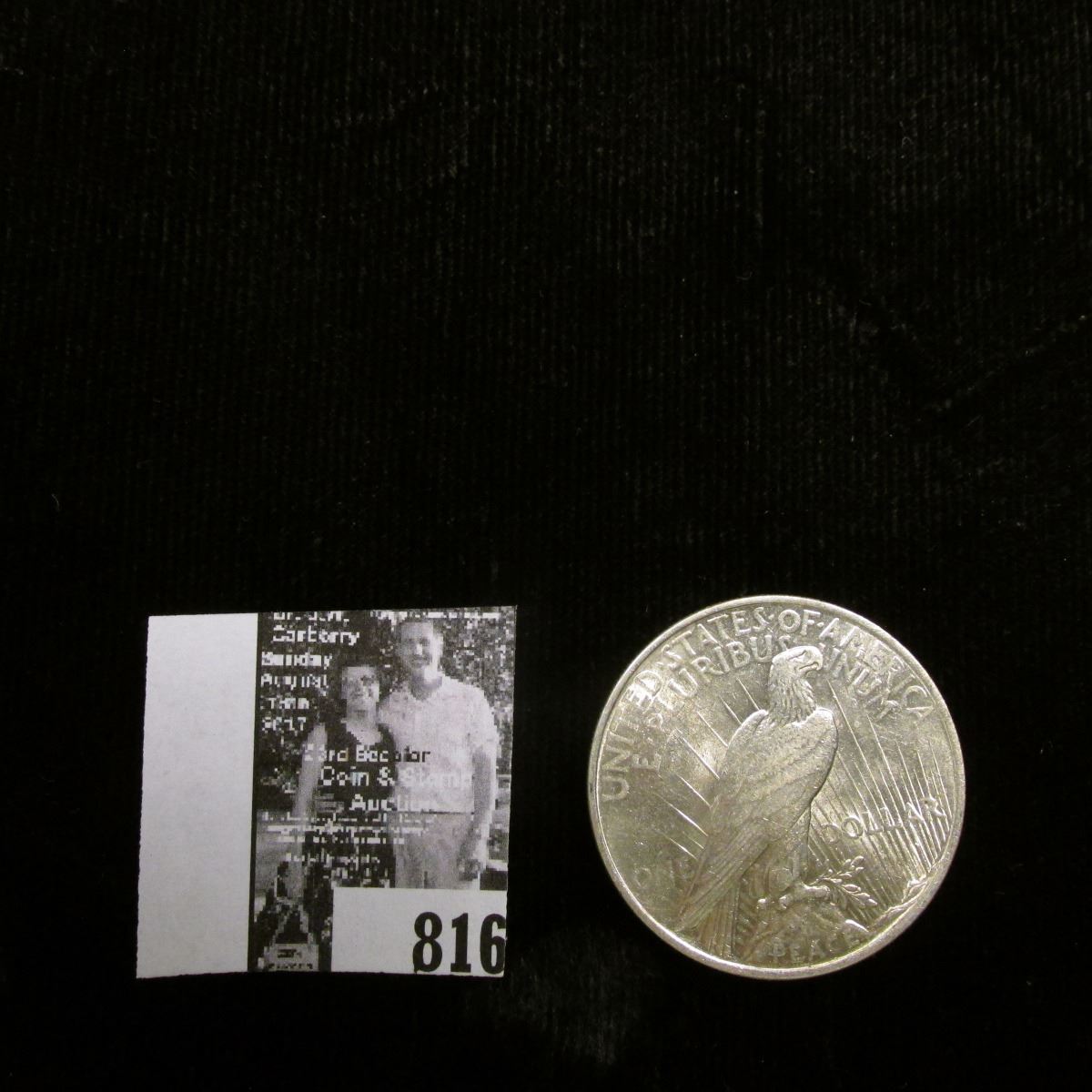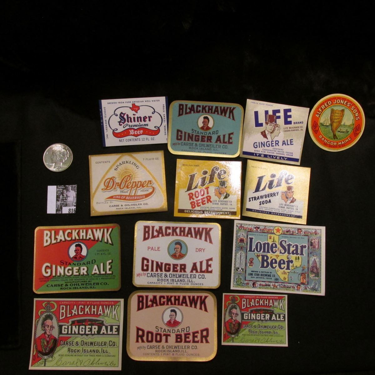 1924 P U.S. Peace Silver Dollar, Briliant Uncirculated; & a group of (13) different Beer and Pop Bottle labels.