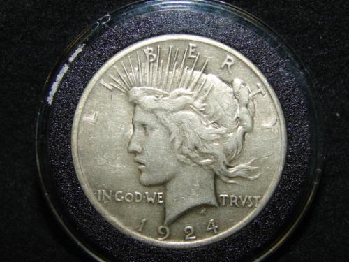 1924 U.S. PEACE DOLLAR. Coin is in circular case.