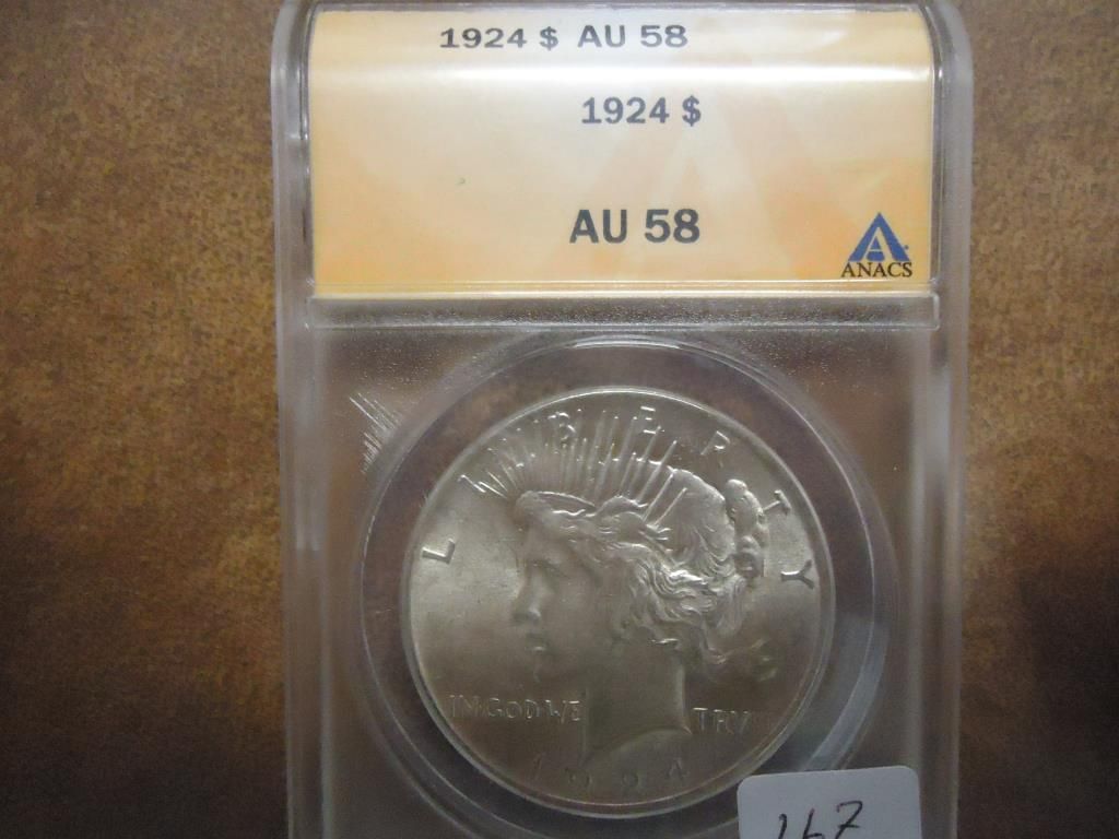 1924 PEACE SILVER DOLLAR ANACS AU58