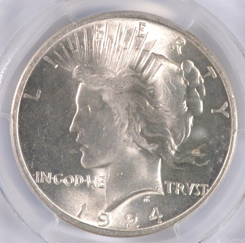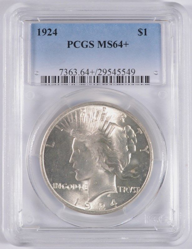 1924 PEACE SILVER DOLLAR, PCGS MS-64+ WHITE
