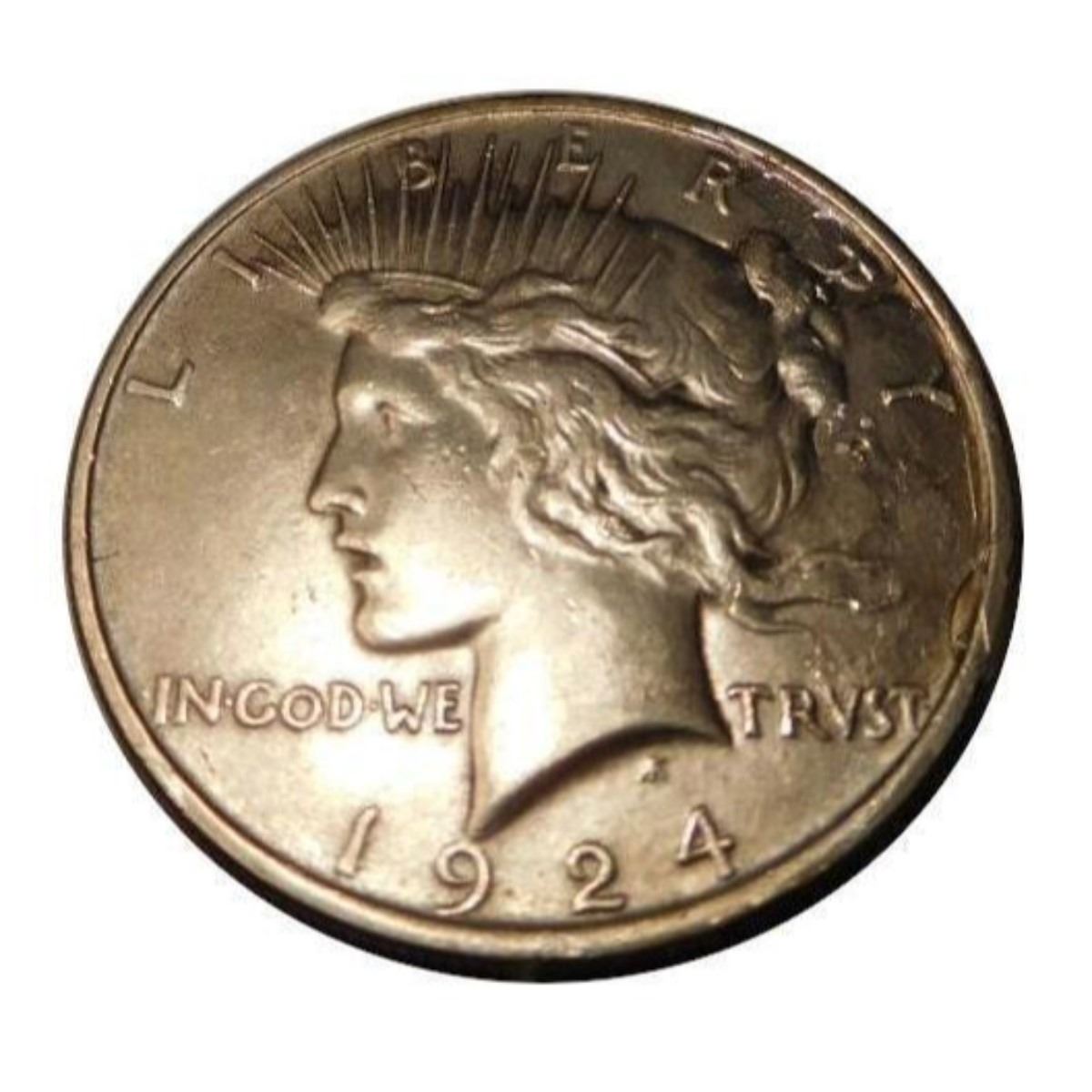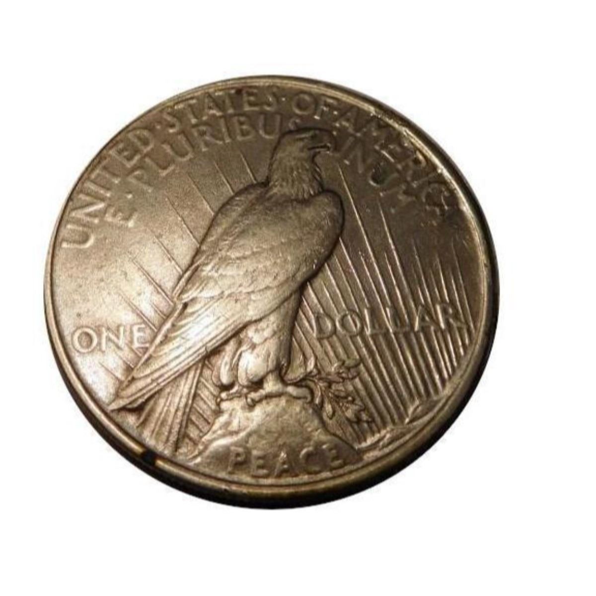 JC-30101-228 The Peace Dollar was coined from 1921 to 1928, and then in 1934 and 1935. The design by Anthony de Francisci, who won a competition to design a new dollar after the end of World War I. Like its predecessor, the Morgan Dollar, the Peace Dollar was 38 millimeters across, and made of 90% silver. After 1935, the U.S. produced no more true "silver" dollars for general circulation (even though the copper clad Eisenhower dollars, minted in the 1970s, are sometimes referred to as "silver dollars". Â JC-30328