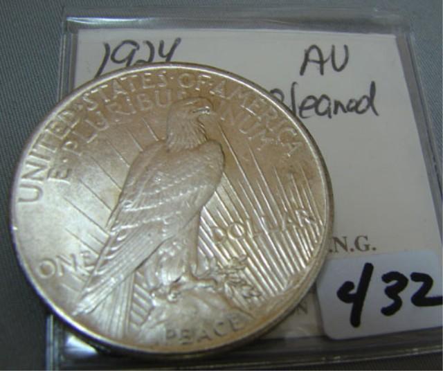 1924 Peace Silver Dollar AU Cleaned