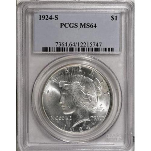 <B>1924-S $1 MS64 PCGS.</B></I> A brilliant and blazing near-Gem of this lower mintage and conditionally scarce issue. The strike is above average, and there are no distracting abrasions.<BR><BR><B>Coin Engraver:</B> Anthony de Francisci<BR><BR><b>Shipping:</b> Coins & Currency (<a target="_blank" href="http://www.heritageauctions.com/common/shipping.php">view shipping information</a>)