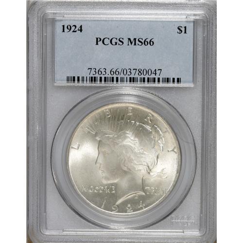 1924 S$1 MS66 PCGS. Wonderful frosty luster, pretty mu