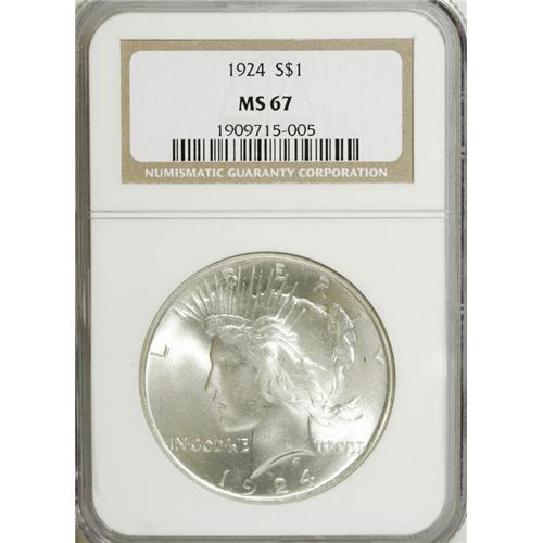 1924 S$1 MS67 NGC. Untoned and supremely lustrous, wit