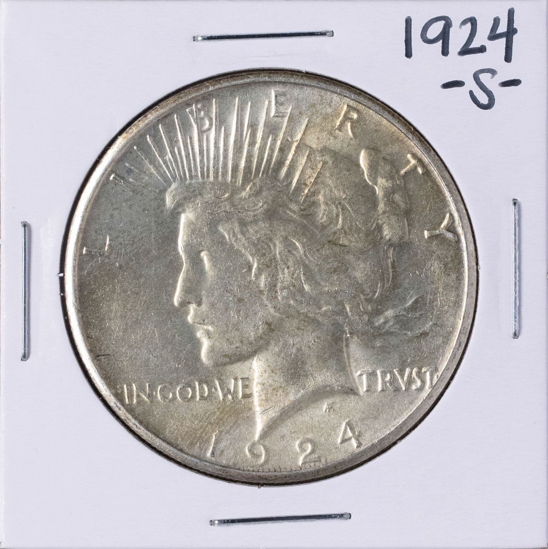 One 1924-S $1 Peace Silver Dollar Coin.