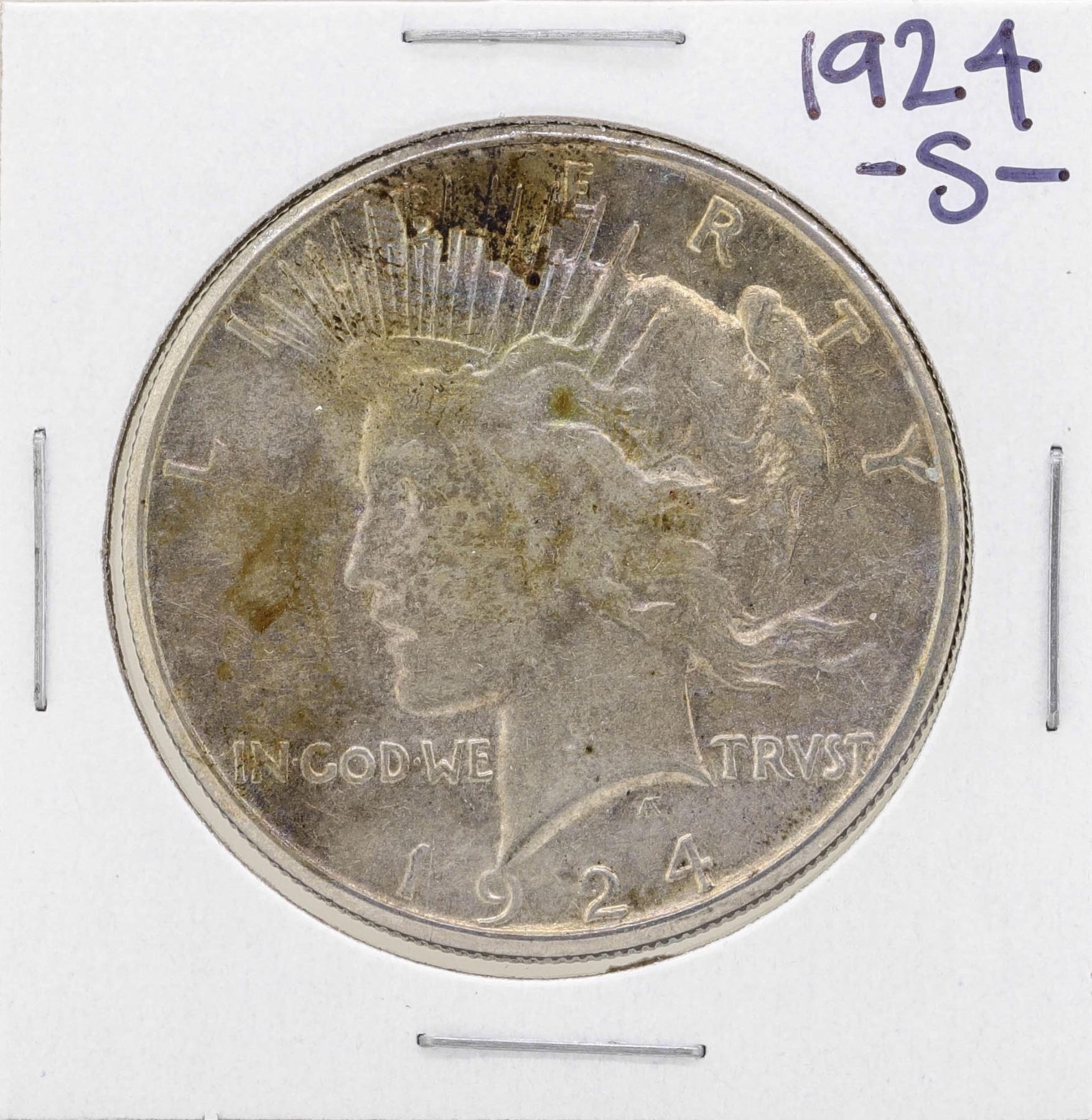 One 1924-S $1 Peace Silver Dollar Coin.