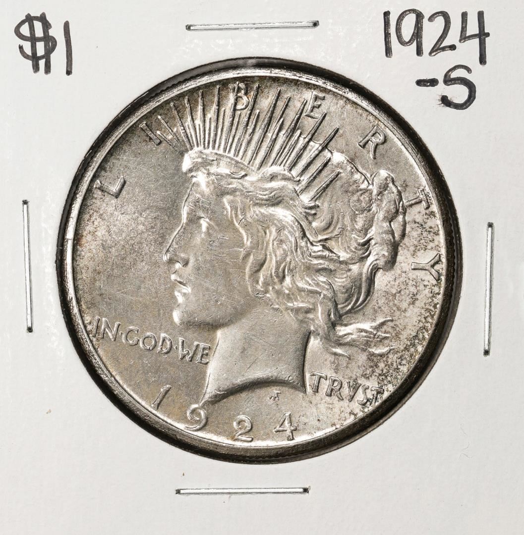 One 1924-S $1 Peace Silver Dollar Coin.
