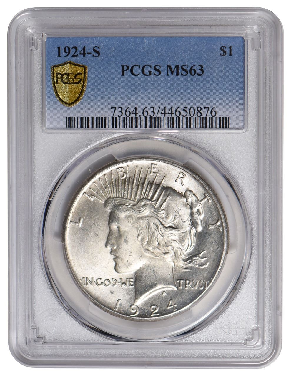 One 1924-S $1 Peace Silver Dollar PCGS MS63.