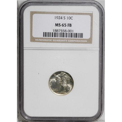 <B>1924-S<10C> MS65 Full Bands NGC.</B></I> A satiny Gem with hints of golden peripheral color at the top of the reverse. The frosty portrait displays only a couple of shallow blemishes on Liberty's jaw, perhaps the only grade-limiting factors on this extremely difficult and much underrated issue. Census: 5 in 65 Full Bands, 1 finer (7/06).