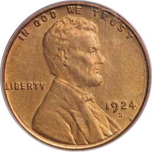 <B>1924-S 1C MS64 Red PCGS.</B></I> Nicely struck for this relatively unsung condition rarity, with a nominal degree of mellowing over each side. A few isolated carbon spots near the borders preclude a Gem rating. The surfaces are remarkably clean for an MS64 and are clearly suggestive of an even higher grade. Population: 75 in 64, 8 finer (8/07).<BR><BR><B>Coin Engraver:</B> Victor D. Brenner<BR><BR><b>Shipping:</b> Coins & Currency (<a target="_blank" href="http://www.heritageauctions.com/common/shipping.php">view shipping information</a>)