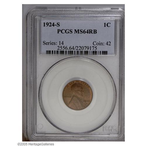 1924-S 1C MS64 Red and Brown PCGS. The design elements 1924-S[1C] MS64 Red and Brown PCGS.