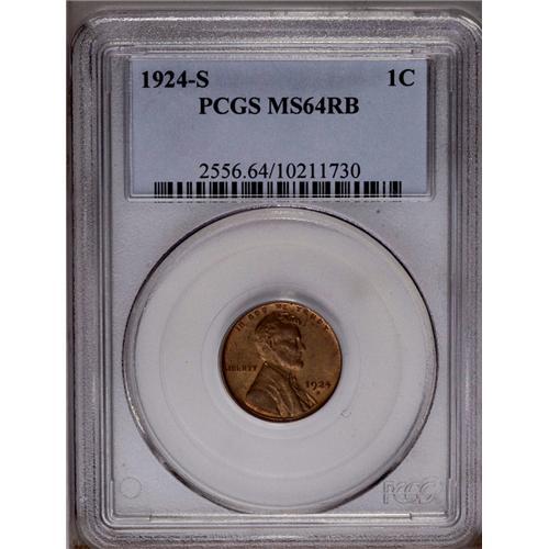1924-S 1C, RB 1924-S[1C] MS64 Red and Brown PCGS.