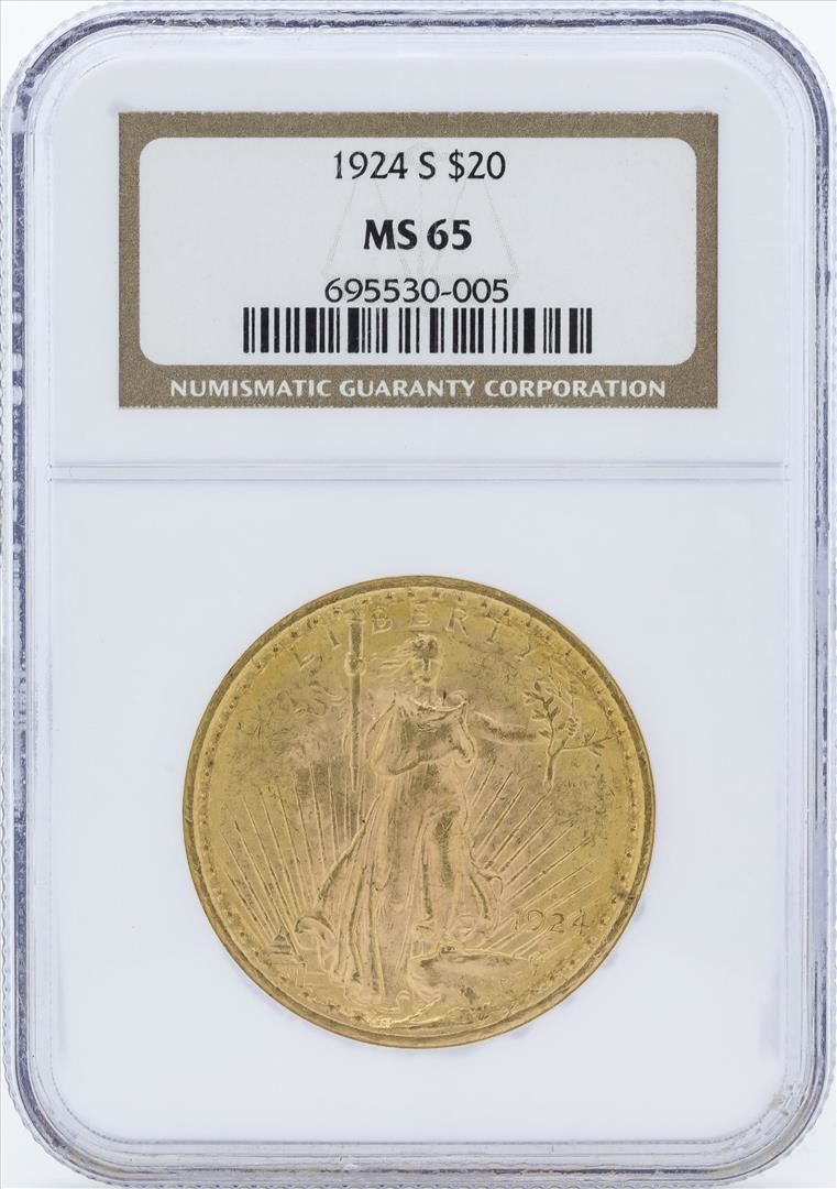 One 1924-S $20 St. Gaudens Double Eagle Gold Coin NGC MS65. NGC Certified.