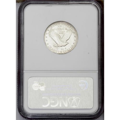 <B>1924-S<25C> MS61 Full Head NGC.</B></I> Brilliant-white luster with some weakness on the shield and the left (facing) leg and surfaces exhibiting minor abrasions and heavy reverse die striations. A very scarce issue with a pleasant appearance for the grade.