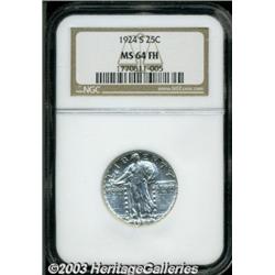 1924-S 25C MS64 Full Head NGC. Well defined with no obvious abrasions, the surfaces are mostly brilliant but there is not quite enough "pop" for the coin to grade a full MS65. The obverse field shows numerous die striations (as struck), a typical characteristic on '24-S Quarters. Important notice: Heritage usually auctions material at the rate of 200-250 lots per hour. On some occasions eBay Live bid software or the Internet may not be able to keep up with the pace of the auction. We recommend placing a realistic absentee bid now as insurance to avoid disappointment. Occasionally the auctioneer may eliminate or reject an eBay Live bid, and the auctioneer may also reopen a lot after the close of the eBay live bidding (usually because we missed an audience bid), and may reject your bid even if it shows you as the winning bidder. By bidding via eBay Live, you agree that Heritage may award the lot to another bidder at its sole discretion under the circumstances described above or any other reasonable circumstances. Also please note that all Heritage lots purchased through eBay Live carry a 20% Buyer's Premium. Please make sure you read the Terms and Conditions before you bid.