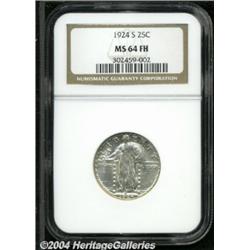 <B>1924-S<25C> MS64 Full Head NGC.</B></I> Even though 2.8 million pieces were struck of the 1924-S Quarter, it is believed that only about 2% were produced with full head definition. However, this is a curiously overlooked issue by all but the most dedicated collectors, who have learned to respect the 1924-S's rarity in the course of assembling a set. This is a heavily frosted example that is essentially untoned overall. A well defined near-Gem with all but a couple of the rivets showing on the shield. One small abrasion is seen between the eagle's wings, that probably being the grade limiting factor. <BR><BR><B>Important notice:</B> Heritage usually auctions material at the rate of 200-250 lots per hour. On some occasions eBay Live bid software or the Internet may not be able to keep up with the pace of the auction. We recommend placing a realistic absentee bid now as insurance to avoid disappointment. Occasionally the auctioneer may eliminate or reject an eBay Live bid, and the auctioneer may also reopen a lot after the close of the eBay live bidding (usually because we missed an audience bid), and may reject your bid even if it shows you as the winning bidder. By bidding via eBay Live, you agree that Heritage may award the lot to another bidder at its sole discretion under the circumstances described above or any other reasonable circumstances. Since eBay bids are not shown to us until we open the lot on the floor, we treat those bids just like floor bids. In most cases the floor responds before the eBay bid is presented to us, due to Internet lag time, so for consistency we have made it a policy that floor bids are always considered first over tie eBay live bids. Also please note that all Heritage lots purchased through eBay Live carry a 20% Buyer's Premium. Please make sure you read the Terms and Conditions before you bid. </span></font></tr></table></td></tr></table>