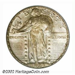 1924-S 25C MS66 Full Head PCGS. The 1924-S is a widely recognized condition rarity in the Standing Liberty Quarter series. Most examples are either weakly struck or show heavily abraded surfaces. Only 2% of the 2.8 million pieces minted are believed to exist today with Full Head definition. The devices are fully defined throughout and each side has lovely mint luster and is covered with light gray-golden toning that deepens slightly around the outer margins. Population: 9 in 66, 0 finer (9/02). Important notice: We expect to be auctioning lots at the rate of 200-250 per hour. Sometimes eBay Premier live bid software cannot keep up with that pace, so we strongly recommend that you place a realistic proxy bid now as insurance to avoid disappointment. Also please note that all Heritage/CAA lots purchased through eBay Premier carry a 20% Buyer's Premium. Please make sure you read the Terms and Conditions.