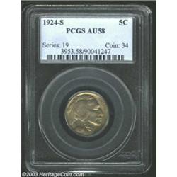 <TABLE cellSpacing=0 cellPadding=0 width="100%" bgColor=#000000 border=0><TBODY><TR><TD width="100%"><TABLE cellSpacing=1 cellPadding=3 width="100%" border=0><TBODY><TR><TD width="100%" bgColor=#79735c><FONT face=arial color=#ffffff size=3><B>Description</B> </FONT></TD></TR><TR><TD width="100%" bgColor=#ffffff><FONT face=arial size=2><B>1924-S 5C AU58 PCGS.</B></I> A key date in the buffalo nickel series, this piece, due to its already typically weak strike, shows little horn detail. While this is the case, little wear can actually be seen and the piece is undistracted by marks, carbon spots, or unattractive toning. </FONT></TD></TR></TBODY></TABLE></TD></TR></TBODY></TABLE><BR><A name=PricesRealized></A><TABLE cellSpacing=0 cellPadding=0 width="100%" bgColor=#000000 border=0><TBODY><TR><TD width="100%"><TABLE cellSpacing=1 cellPadding=3 width="100%" border=0><TBODY><TR><TD width="100%" bgColor=#79735c><A name=PR><FONT face=arial color=#ffffff size=3><B>Previous Prices from Heritage Auctions</B> </FONT></A></TD></TR><TR><TD bgColor=#f6f6ed><TABLE cellSpacing=0 cellPadding=0 width="100%" border=1><TBODY><TR><TD align=middle width="33%"><B>Date</B></TD><TD align=middle width="33%"><B>Service</B></TD><TD align=middle width="33%"><B>Price</B></TD></TR><TR bgColor=whitesmoke><TD width="33%"><B>07/29/2003</B></TD><TD width="33%">PCGS</TD><TD width="33%">$1,610.00</TD></TR><TR bgColor=whitesmoke><TD width="33%"><B>10/07/1995</B></TD><TD width="33%">ANACS</TD><TD width="33%">$1,650.00</TD></TR></TBODY></TABLE></TD></TR><TR><TD bgColor=#ffffff><FONT face=arial size=1 ?>PLEASE NOTE: All prices realized reflect the final hammer price PLUS the buyer's premium in auctions that charge a buyer's premium. Each item has a notation at the top of the listing indicating whether that lot included a buyer's premium. Example: A item that sells with a final hammer price of $100 and a 20% buyer's premium will display with a price realized of $120. All information listed is intended to be as accurate as possible, but errors are possible. Please use this guide carefully and inform us of any inaccuracies. </FONT></TD></TR></TBODY></TABLE></TD></TR></TBODY></TABLE><BR><TABLE cellSpacing=0 cellPadding=0 width="100%" bgColor=#000000 border=0><TBODY><TR><TD width="100%"><TABLE cellSpacing=1 cellPadding=3 width="100%" border=0><TBODY><TR><TD width="100%" bgColor=#79735c colSpan=6><FONT face=arial color=#ffffff size=3><B>Price Guide*</B> </FONT></TD></TR><TR bgColor=#f6f6ed><TD align=middle><B>Grade</B> </TD><TD align=middle><B>Coin World<BR>(Trends)</B> </TD><TD align=middle><B>Numismedia<BR>Retail</B> </TD><TD align=middle><B>Numismedia<BR>Wholesale</B> </TD><TD align=middle><B>Coin<BR>Universe</B> </TD><TD align=middle><B>Heritage<BR>Value Index</B> </TD></TR><TR bgColor=#ffffff><TD align=middle>55</TD><TD align=right>---</TD><TD align=right>---</TD><TD align=right>$1,080.00</TD><TD align=right>$1,700.00</TD><TD align=right>$1,222.58</TD></TR><TR style="FONT-WEIGHT: bold" bgColor=#cccfdd><TD align=middle>58</TD><TD align=right>$1,450.00</TD><TD align=right>---</TD><TD align=right>$1,175.00</TD><TD align=right>---</TD><TD align=right>$1,286.50</TD></TR><TR bgColor=#ffffff><TD align=middle>60</TD><TD align=right>$1,750.00</TD><TD align=right>---</TD><TD align=right>$1,820.00</TD><TD align=right>$2,275.00</TD><TD align=right>$1,434.17</TD></TR><TR bgColor=#ffffff><TD colSpan=6><FONT size=1>*All information listed is intended to be as accurate as possible, but errors are possible. No item may be returned or refused based on this information which is provided as a service to our customers. You should contact each pricing source directly to determine the accuracy of this information. </FONT></TD></TR></TBODY></TABLE></TD></TR></TBODY></TABLE><BR><TABLE cellSpacing=0 cellPadding=0 width="100%" bgColor=#000000 border=0><TBODY><TR><TD width="100%"><TABLE cellSpacing=1 cellPadding=3 width="100%" border=0><TBODY><TR><TD width="100%" bgColor=#79735c><FONT face=arial color=#ffffff size=3><B>Population Guide</B> </FONT></TD></TR><TR bgColor=#ffffff><TD align=middle><!-- Begin Output of Population Grid--><TABLE cellSpacing=0 cellPadding=0 width="100%" border=0><TBODY><TR><TD vAlign=center><TABLE cellSpacing=0 width="100%" border=1 cellsadding="3"><TBODY><TR><TD vAlign=center><TABLE cellSpacing=0 cellPadding=3 width="100%" border=1><TBODY><TR><TD vAlign=center align=middle bgColor=#f0f1e8 colSpan=2 <CENTER><FONT face=Arial size=2><B>PCGS Pop </B></FONT><CENTER></CENTER></TD><TD vAlign=center align=middle bgColor=#f0f1e8 colSpan=2><CENTER><FONT face=Arial size=2><B>NGC Pop</B></CENTER></FONT></TD></TR><TR><TD vAlign=center><FONT face=Arial size=2>(58)</FONT> </TD><TD vAlign=center align=right><FONT face=Arial size=2>7</FONT> </TD><TD vAlign=center><FONT face=Arial size=2>(58)</FONT> </TD><TD vAlign=center align=right><FONT face=Arial size=2>12</FONT> </TD></TR><TR><TD vAlign=center><FONT face=Arial size=2>(>58)</FONT> </TD><TD vAlign=center align=right><FONT face=Arial size=2>203</FONT> </TD><TD vAlign=center><FONT face=Arial size=2>(>58)</FONT> </TD><TD vAlign=center align=right><FONT face=Arial size=2>112</FONT> </TD></TR></TBODY></TABLE></TD></TR></TBODY></TABLE></TD></TR></TBODY></TABLE><!-- End Output of Population Grid--> Important notice: Heritage usually auctions material at the rate of 200-250 lots per hour. On some occasions eBay Live bid software or the Internet may not be able to keep up with the pace of the auction. We recommend placing a realistic absentee bid now as insurance to avoid disappointment. Occasionally the auctioneer may eliminate or reject an eBay Live bid, and the auctioneer may also reopen a lot after the close of the eBay live bidding (usually because we missed an audience bid), and may reject your bid even if it shows you as the winning bidder. By bidding via eBay Live, you agree that Heritage may award the lot to another bidder at its sole discretion under the circumstances described above or any other