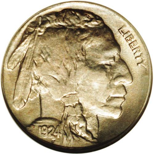 <B>1924-S<5C> MS64 NGC.</B></I> The scarcity of the 1924-S is based on absolute rarity as only 1.43 million pieces were produced. While fully struck pieces are seldom available, most examples are better defined than other mintmarked nickels from the 1920s. Bright and satiny overall, each side is lightly toned with a thin coating of multicolored, "oil slick" iridescence over each side. A little softness of strike on the reverse and a couple of minor marks serve to limit the grade.