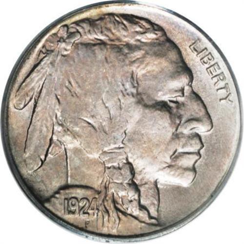 <B>1924-S 5C MS65 PCGS.</B></I> Ex: ADM Collection. Occasionally well struck 1924-S nickels can be found, but the scarcity of such coins is not directly related to poor production methods in the mint. Rather, it is related to the absolute rarity of this issue in all grades. Only 1.4 million pieces were struck, which leaves few coins extant today with a strong strike, weak strike, VF condition, MS60, or MS65 condition. This piece has a bright, satiny finish that is overlaid with rich golden-rose and lilac toning. The reverse can be termed fully struck, but there is a bit of the expected softness on the Indian's braid on the obverse. Population: 32 in 65, 1 finer (8/07).<BR><BR><B>Coin Engraver:</B> James E. Fraser<BR><BR><b>Shipping:</b> Coins & Currency (<a target="_blank" href="http://www.heritageauctions.com/common/shipping.php">view shipping information</a>)