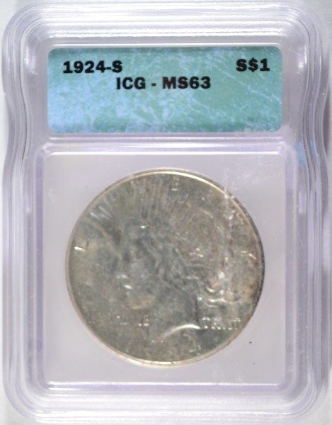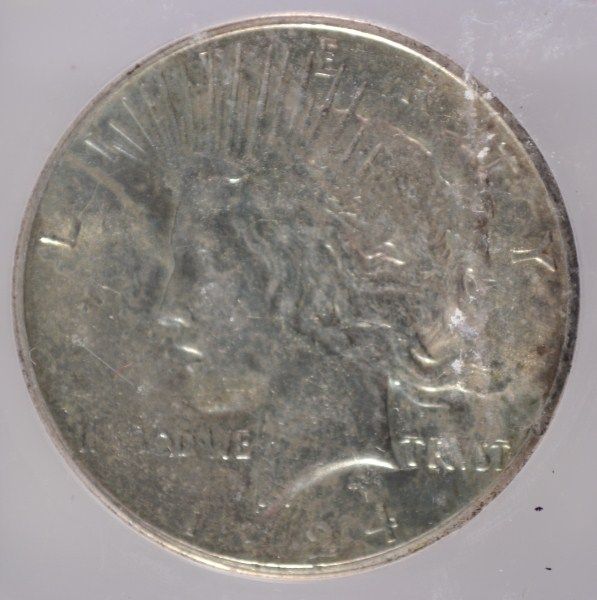 MOSTLY WHITE WITH A LITTLE BIT OF TONING. VERY SOLID FOR THE GRADE