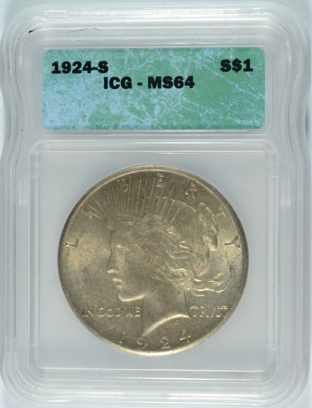 1924-S PEACE DOLLAR ICG MS64 ORIGINAL, NEVER DIPPED
