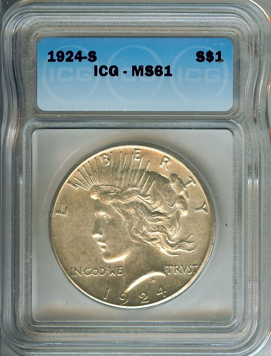 1924-S PEACE SILVER DOLLAR ICG MS61