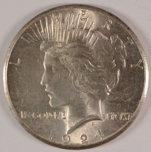1924-S PEACE SILVER DOLLAR, MS-64 WHITE, SCARCE!!