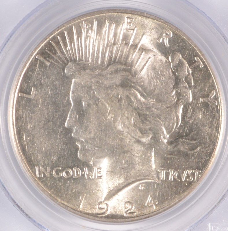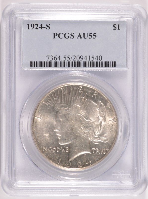 1924-S PEACE SILVER DOLLAR, PCGS AU-55 WHITE