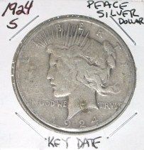 1924-S PEACE SILVER DOLLAR *RARE KEY DATE EARLY SILVER DOLLAR!! SILVER DOLLAR CAME OUT OF SAFE!! ***Coin, Currency & All Items Listed in this auction - Grades, Conditions and Values are not Safe Deposit Coins LLC Responsibilty. Grades, Condition and Values are determined by Consigner(s) & Buyers ONLY