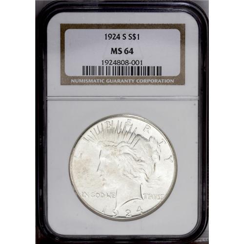 1924-S S$1 MS64 NGC. Exceptionally bold luster and a p 1924-S[img border='0' src='http://www.heritag