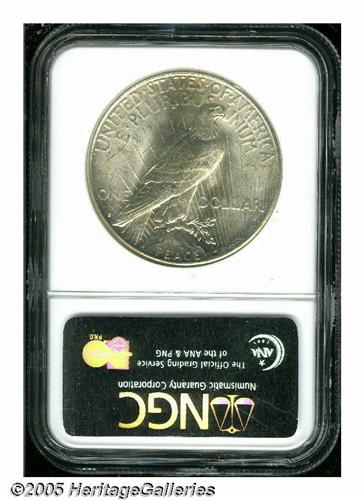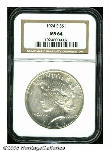 <B>1924-S<S$1> MS64 NGC.</B></I> Very lustrous near-Gem with a number of light contact marks and a hint of russet color.