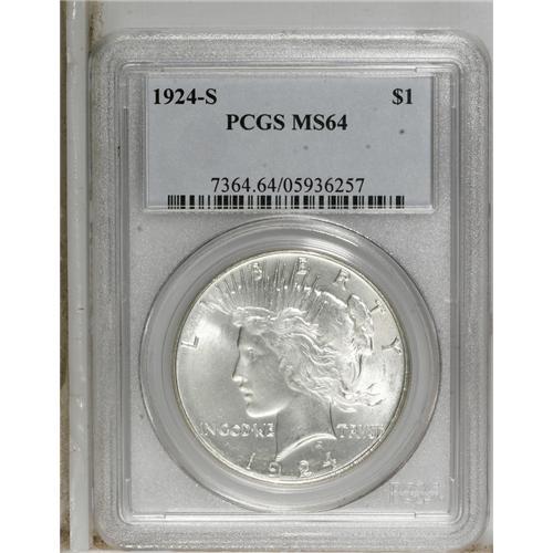 1924-S S$1 MS64 PCGS. A low-mintage S-mint issue, prod