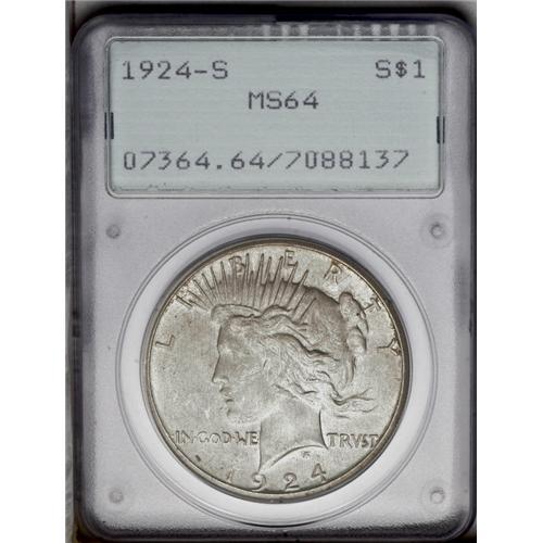 1924-S S$1 MS64 PCGS. Creamy-silver patina overlies gl 1924-S[img border='0' src='http://www.heritag