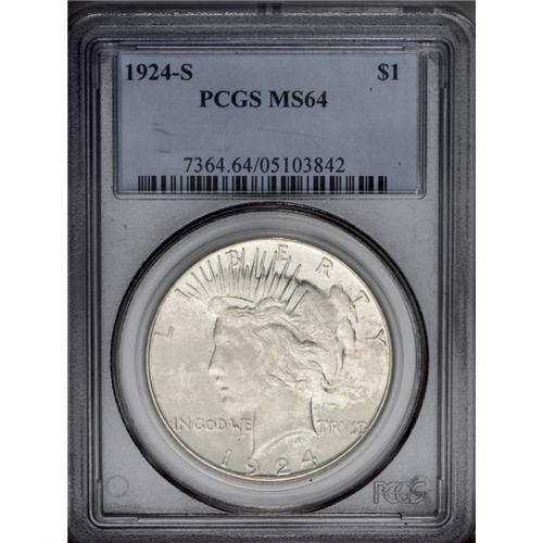 1924-S S$1 MS64 PCGS. While not fully struck, this lus