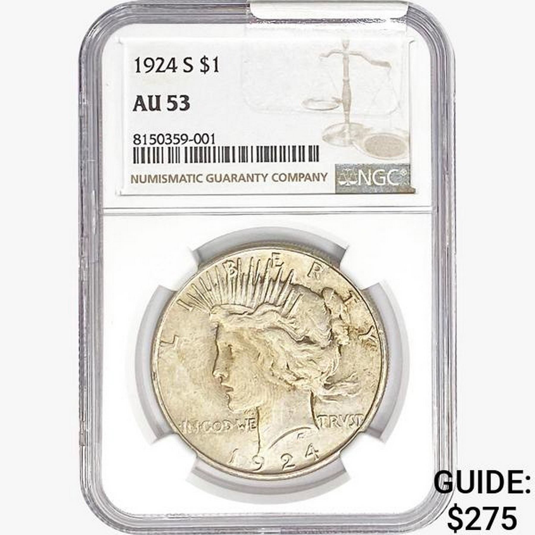 1924-S Silver Peace Dollar NGC AU53