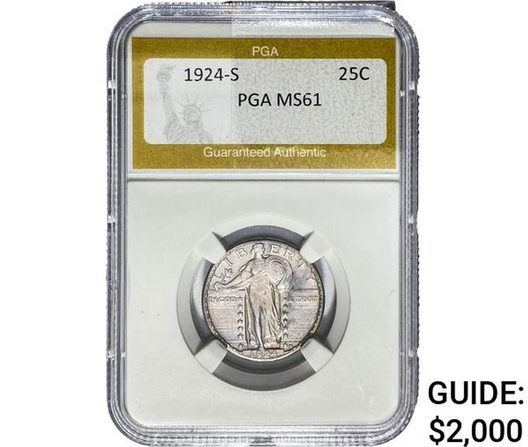 COINS AND CURRENCY LISTED IN GSA’S CATALOG AS GRADED AND ENCAPSULATED BY PCGS, NGC, ANACS, ICG, PCGS CURRENCY, PMG, PCGS BANKNOTE GRADING, CMC OR ANY OTHER THIRD-PARTY GRADING SERVICE ARE LIKEWISE SOLD “AS-IS” EXCEPT AS EXPRESSLY SET FORTH HEREIN. ALL THIRD-PARTY GRADING SERVICE GUARANTEES, INCLUDING AUTHENTICITY, ARE THE SOLE RESPONSIBILITY OF THE THIRD-PARTY GRADING SERVICE AND NOT WARRANTIES OR GUARANTEES OF GSA. BIDDERS SHOULD CONTACT THESE THIRD-PARTY GRADING SERVICES DIRECTLY WITH RESPECT TO ANY CLAIMS OR QUESTIONS THEY MAY HAVE CONCERNING THEIR GUARANTEES AND WARRANTIES. BIDDERS ACKNOWLEDGE AND AGREE THAT AUCTIONEER IS NOT BOUND BY OR LIABLE FOR ANY OPINION OR CERTIFICATION BY ANY THIRD-PARTY GRADING SERVICE. REMOVAL OF A PRODUCT FROM ITS PROTECTIVE CASING OR HOLDER OR ALTERATION OF ANY COIN HOLDER WAIVES ALL RIGHTS CONCERNING THE PRODUCT CONTAINED THEREIN.