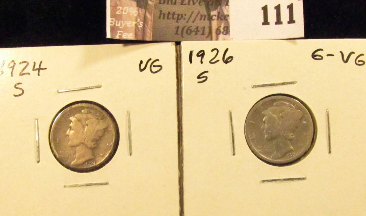 1924 S VG & 1926 S G-VG Mercury Dimes.