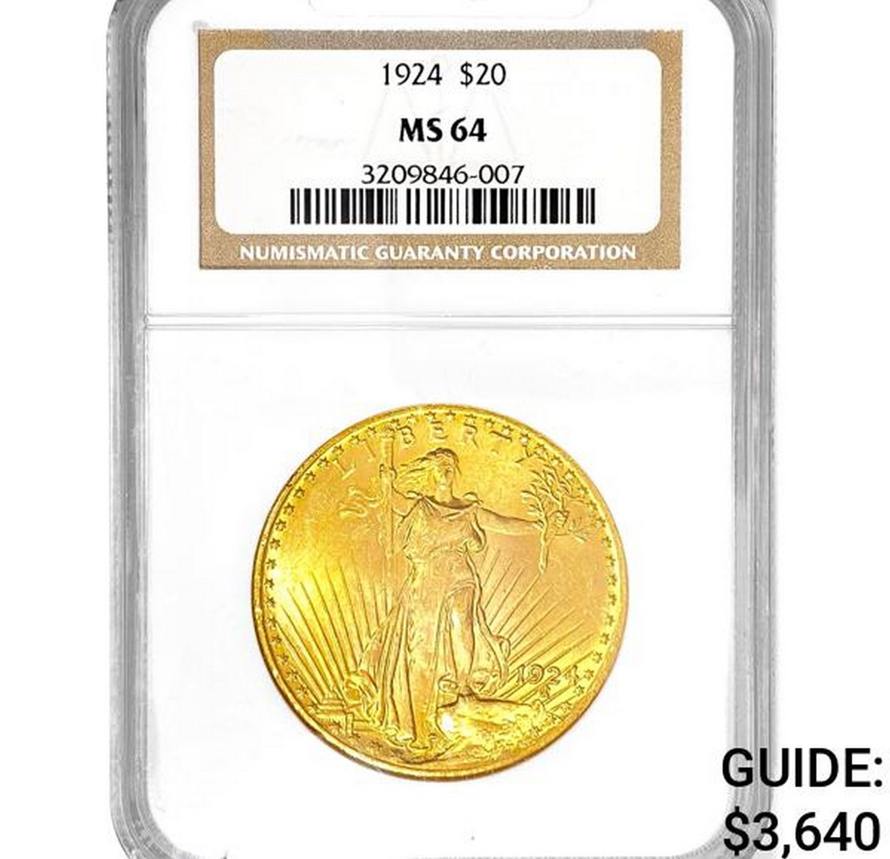 1924 SG $20 Gold Double Eagle NGC MS64