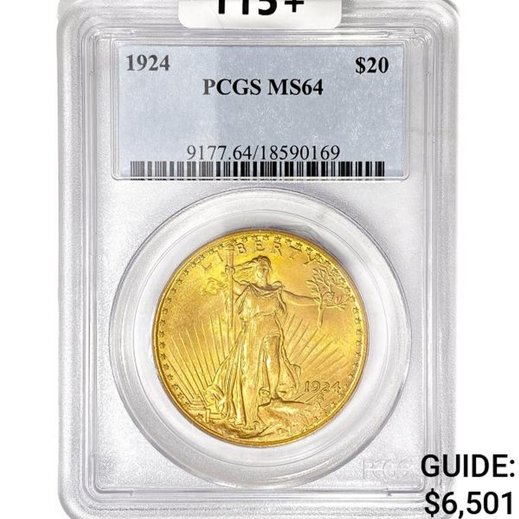 1924 SG $20 Gold Double Eagle PCGS MS64