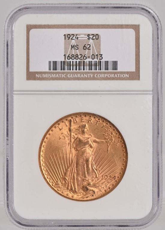 1924 Saint Gaudens $20 Gold Coin NGC MS62