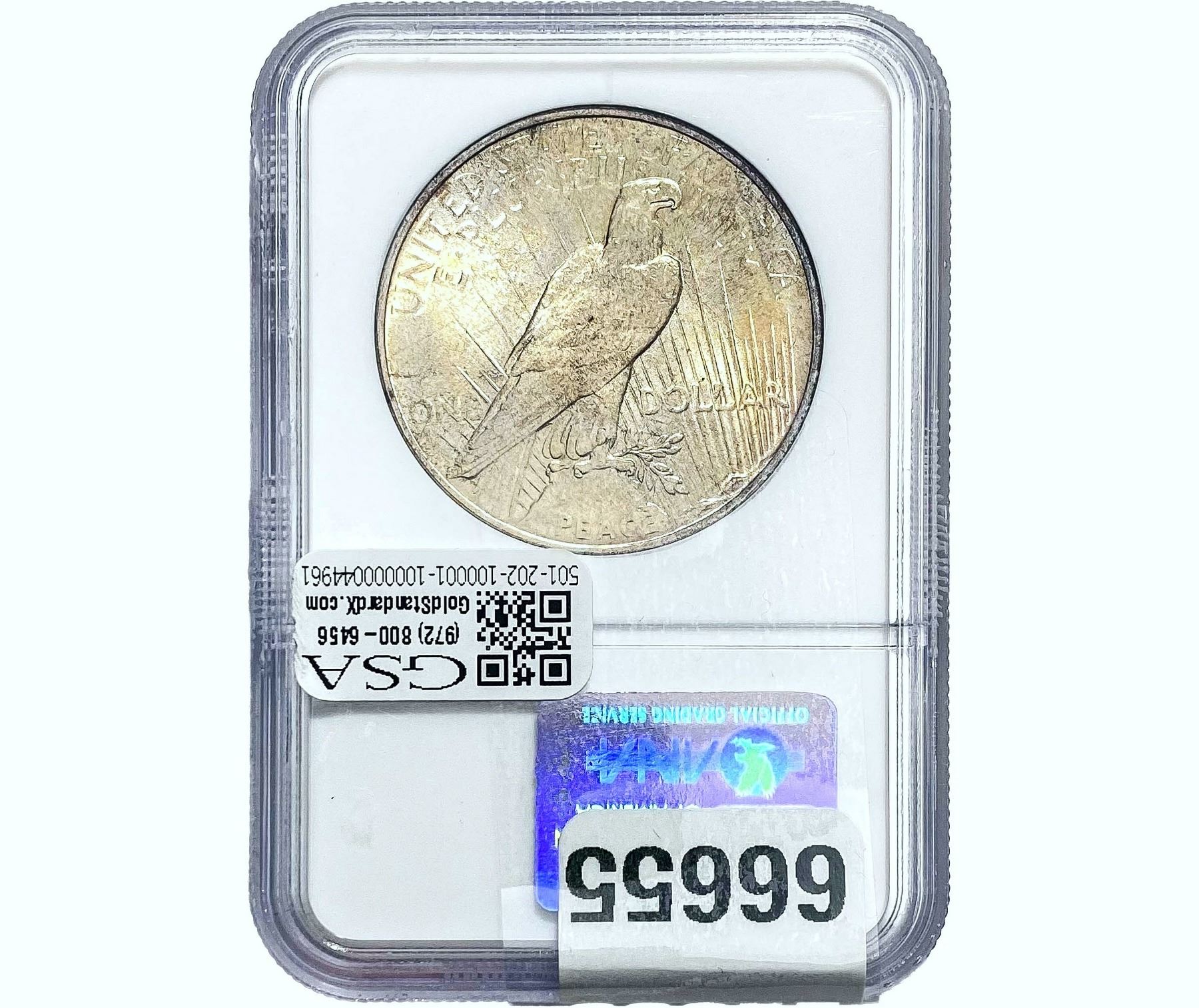 l. All non-certified coins and currency are guaranteed genuine, but are not guaranteed as to grade, since grading is a matter of opinion, an art and not a science, and therefore the description rendered by GSA or any third-party grading service may not agree with the opinion of others (including trained experts), and the same expert may not grade the same item with the same grade at two different times. GSA may, but is not obligated to, express an opinion as to non-certified numismatic items, in GSA’s opinion, or by its employees’ experience and the current interpretation of the American Numismatic Association’s standards as of the date the catalog was prepared. There is no guarantee or warranty expressed or implied that the grading opinions utilized by GSA, if any, will meet the standards of any grading service at any time in the future.