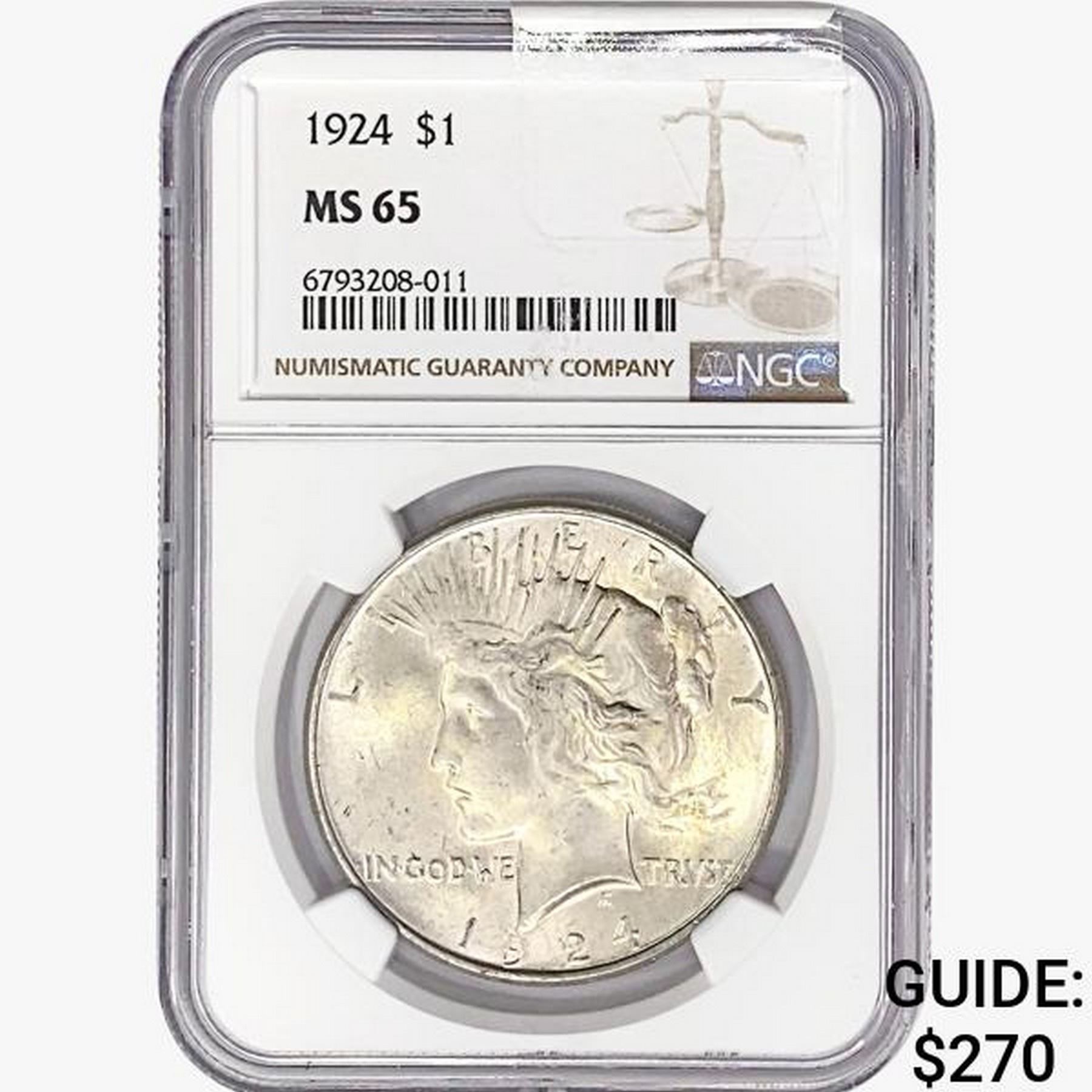 1924 Silver Peace Dollar NGC MS65